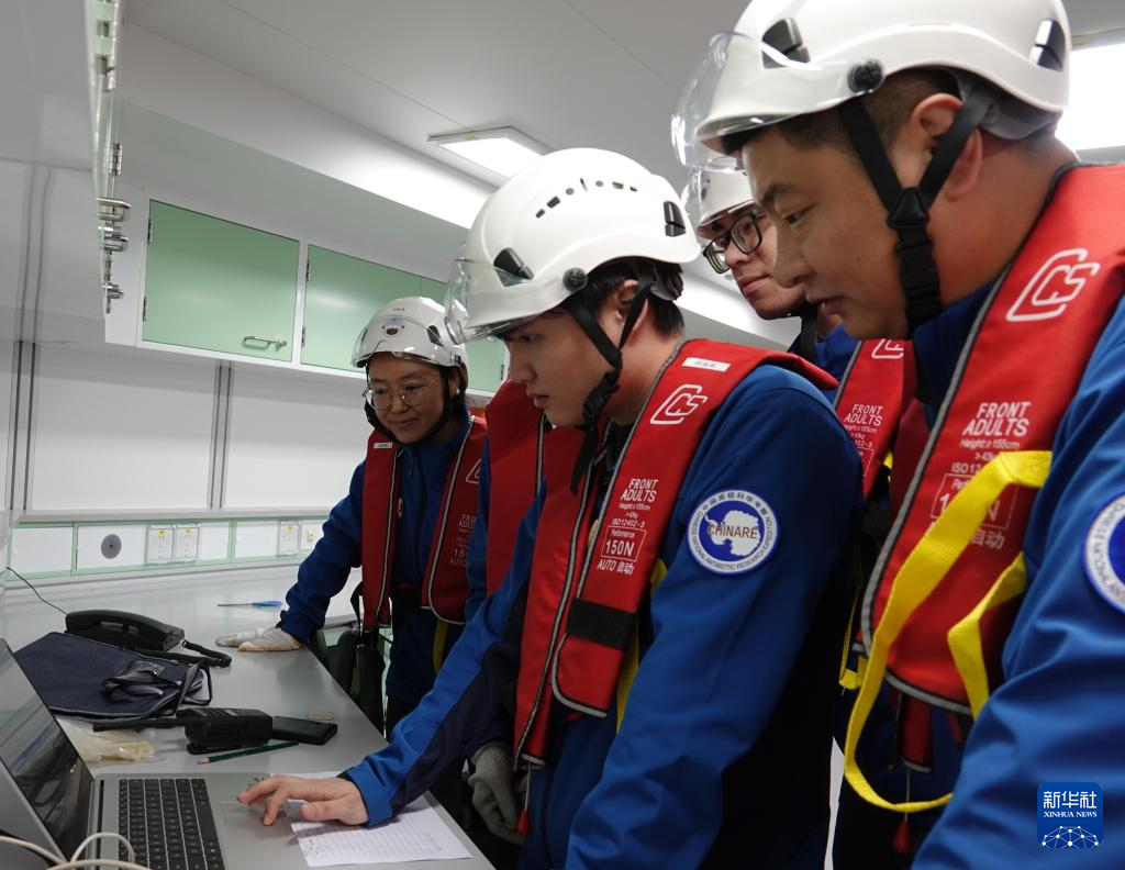船时1月16日,“雪龙”号大洋队队员在实验室查看抛弃式温深仪回传的数据。新华社记者 顾天成 摄