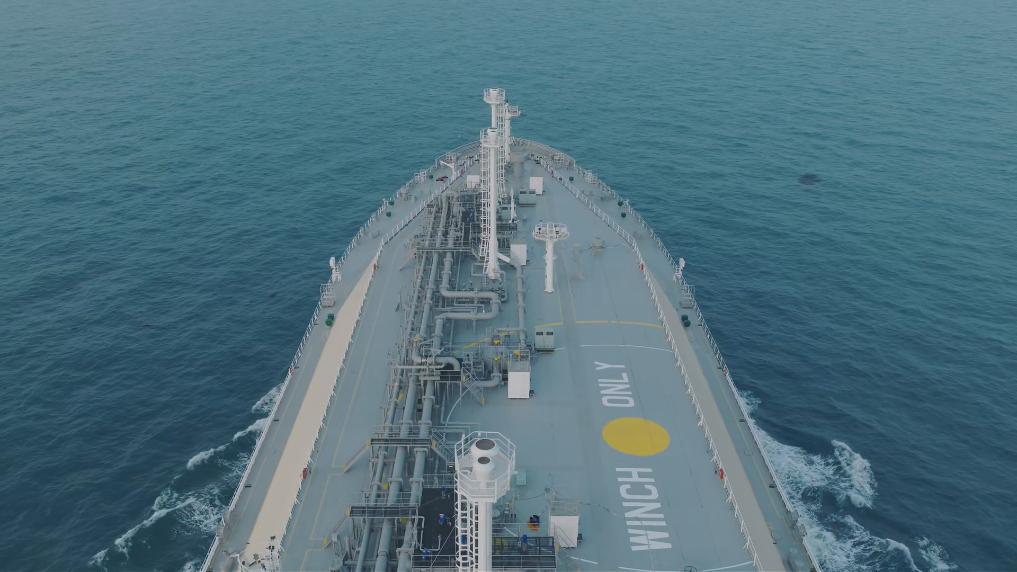 此次交付的LNG运输新造船“天山”轮由沪东中华建造,采用了全球最新一代双燃料低速推进动力系统,单日航行碳排放相比传统燃油驱动减少10吨以上。