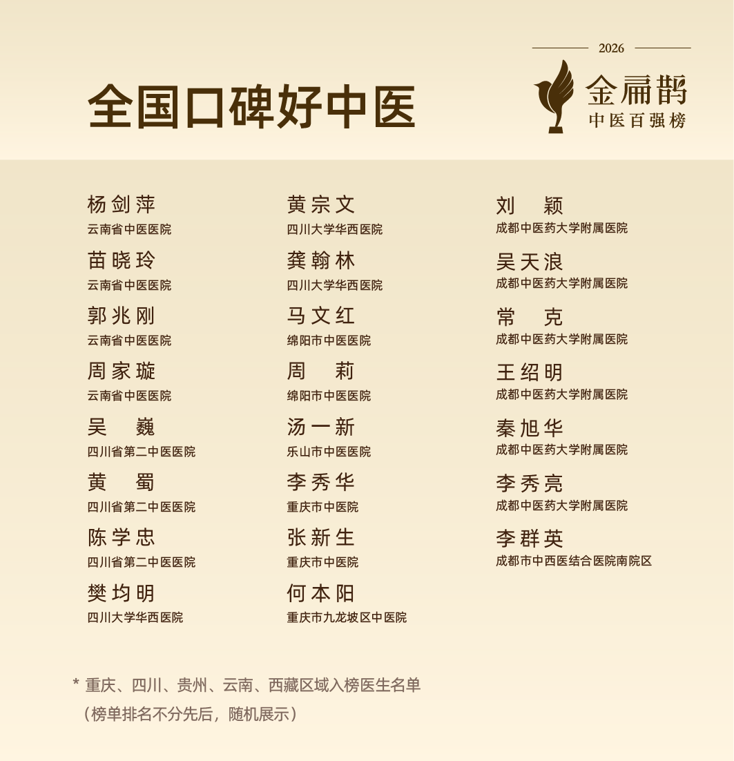 伴随2026金扁鹊中医百强榜于3月26日在北京主会场正式发布,西南地区的中医服务轮廓也进一步显现。西南地区共有78位医生入榜,覆盖重庆、四川、贵州、云南、西藏5个省级行政区中的4个、17个城市,较上届增加10位。