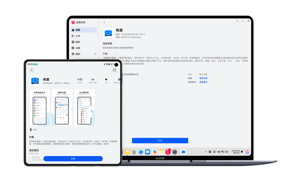 作为国内首批适配鸿蒙生态的企业级即时通讯(IM)协同平台,有度在政企、金融、制造、建筑、能源等关键基础设施行业拥有深厚的客户基础和领先的市场地位。近日,有度鸿蒙PC版正式全量上线,标志着这款国产政企协作标杆软件与鸿蒙生态的深度融合迈出关键一步——为行业客户提供全面自主可控、安全与效率并重的一站式协作新平台。