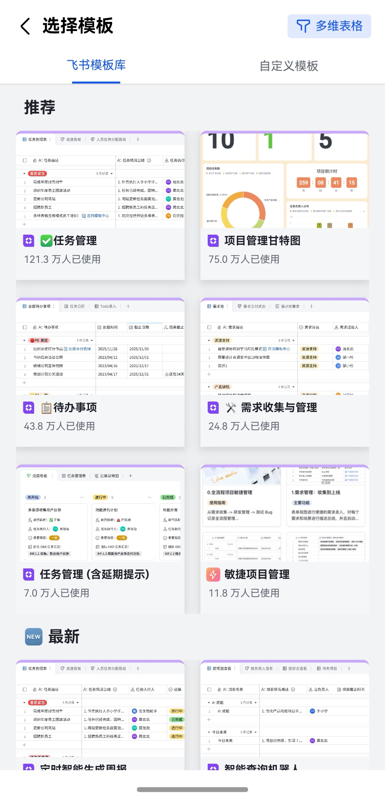 多维表格单的记录支持筛选条件值,让你查找数据不再大海捞针;模板库一键预览、套用;表单填写时直接从通讯录选号码,填完还能一键拨打电话。减少输入错误,就是减少沟通成本。