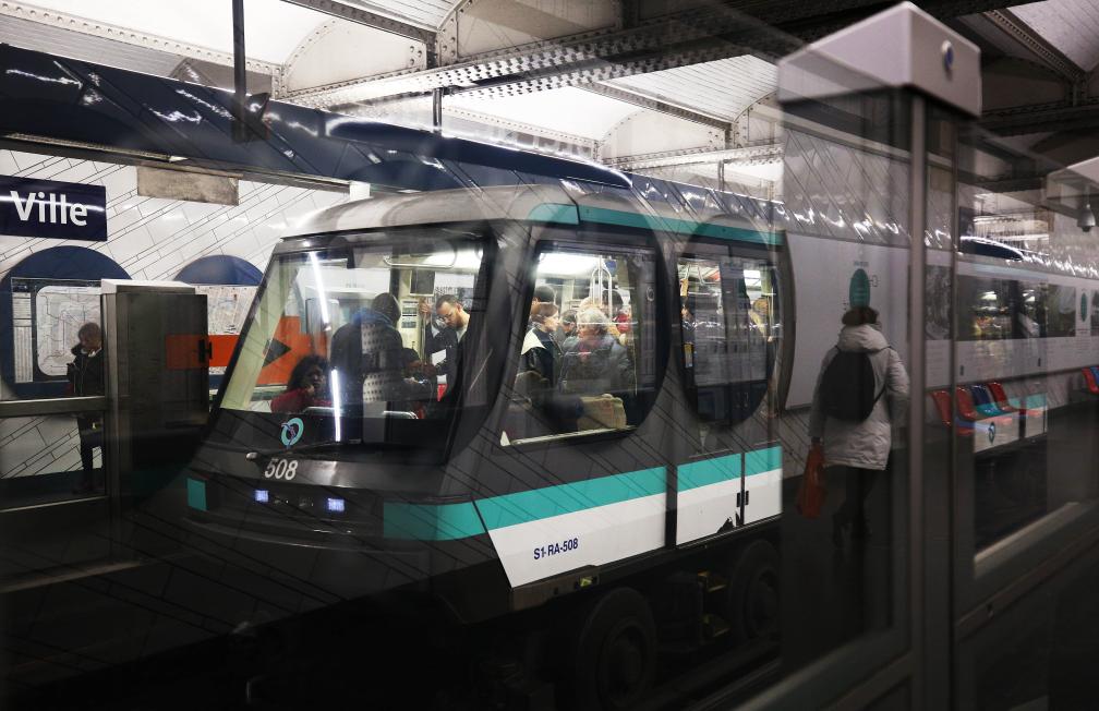 2019年12月20日,在法国巴黎,运行中的地铁1号线较为拥挤。新华社记者高静摄