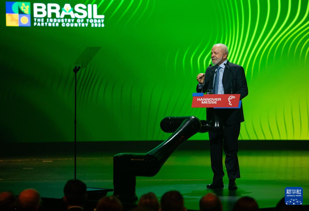 4月19日,主宾国巴西总统卢拉在德国汉诺威工业博览会开幕式上致辞。新华社记者 张豪夫 摄